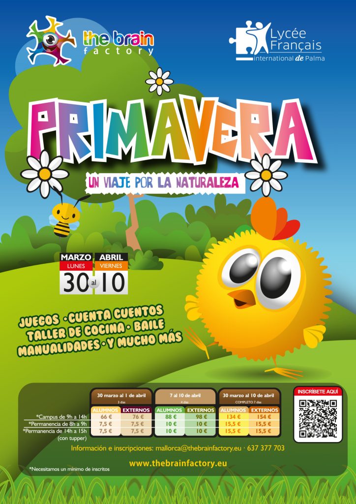Para estas vacaciones escolares de Semana Santa os proponemos un plan para que podías traer a vuestros hijos al centro escolar. La empresa The Brain Factory será la encargada de llevar a cabo el taller y va dirigidos a niños de infantil y primaria.