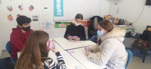 Los alumnos trabajan las reglas de concordancia del participio pasado con el juego de las 7 familias.